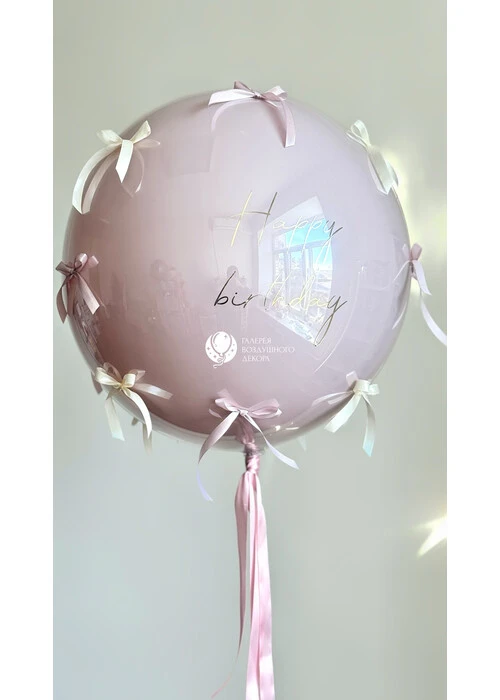 Латексный гелиевый шар 24 дюйма даблбабл с надписью и бантиками