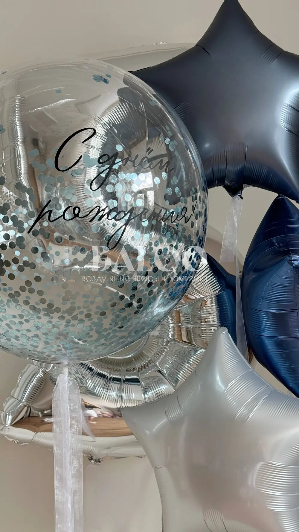 Латексный гелиевый шар 24 дюйма баблс с конфетти и надписью
