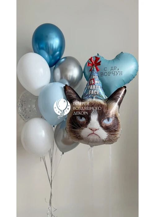 Набор воздушных шаров для мужчины с недовольным котом №10037 — отзывы
