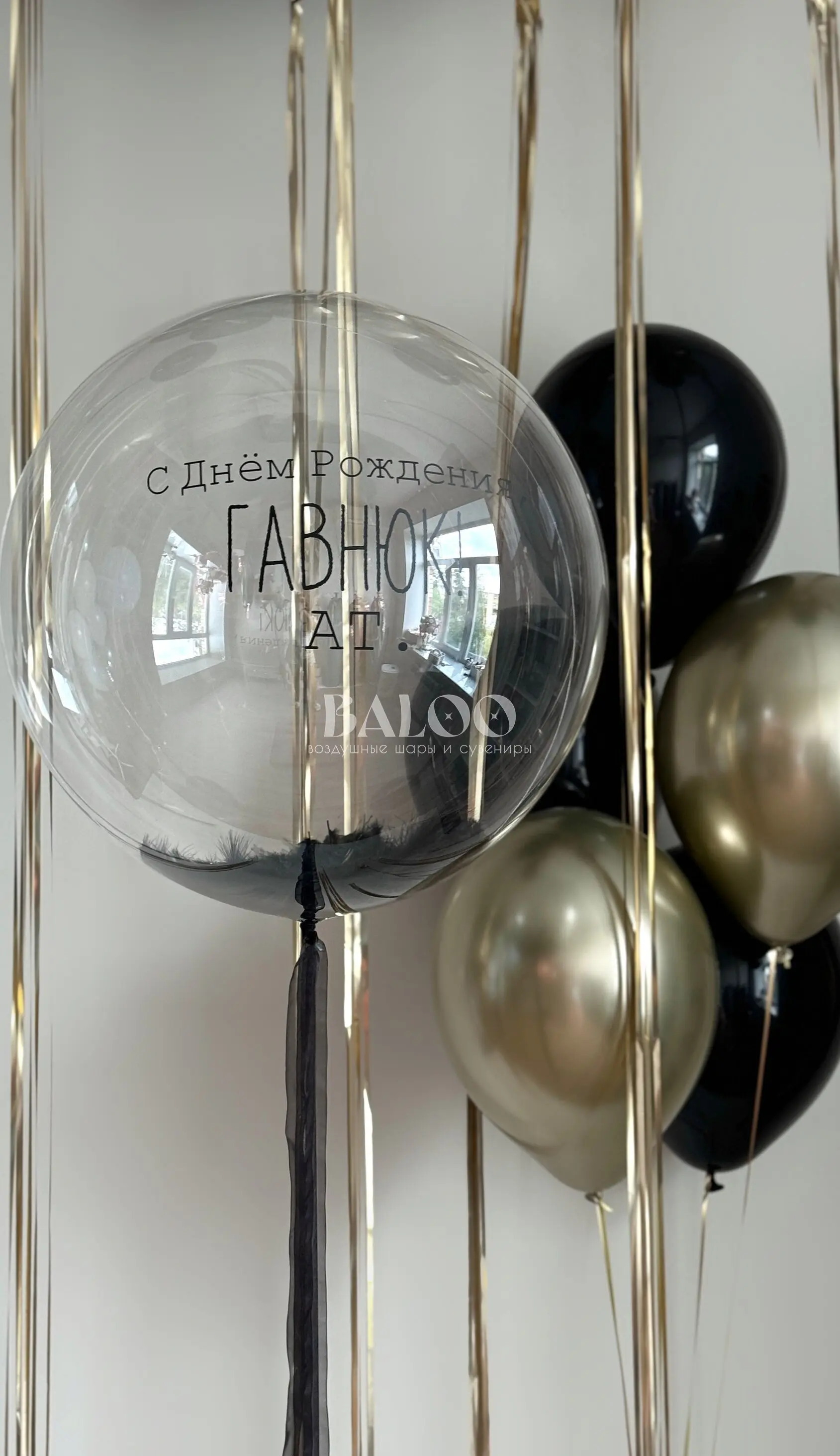 Латексный гелиевый шар 24 дюйма баблс с перьями и надписью