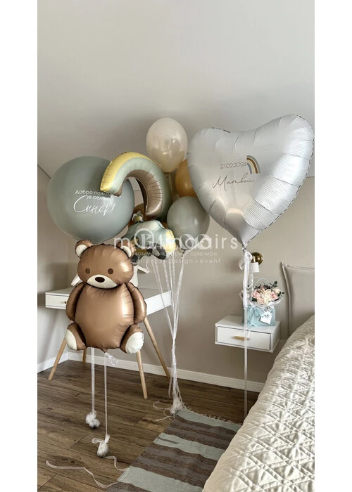 Набор гелиевых шаров на выписку мальчика с мишкой и радугой №3169