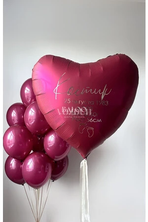 Набор гелиевых шаров в вишневом цвете на выписку №2917