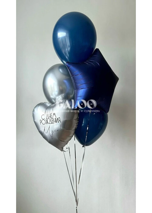 Набор шаров в серебряном и темно-синем цвете на день рождения мужчины №3379