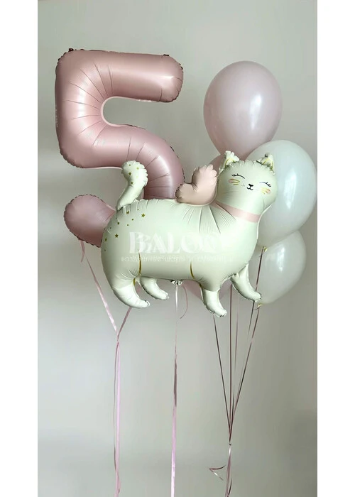 Набор воздушных шаров для девочки с бежевой кошечкой №9917