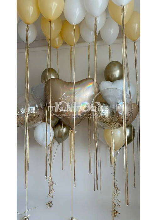 Набор гелиевых воздушных шаров на выписку с большим золотым сердцем №9835 — отзывы