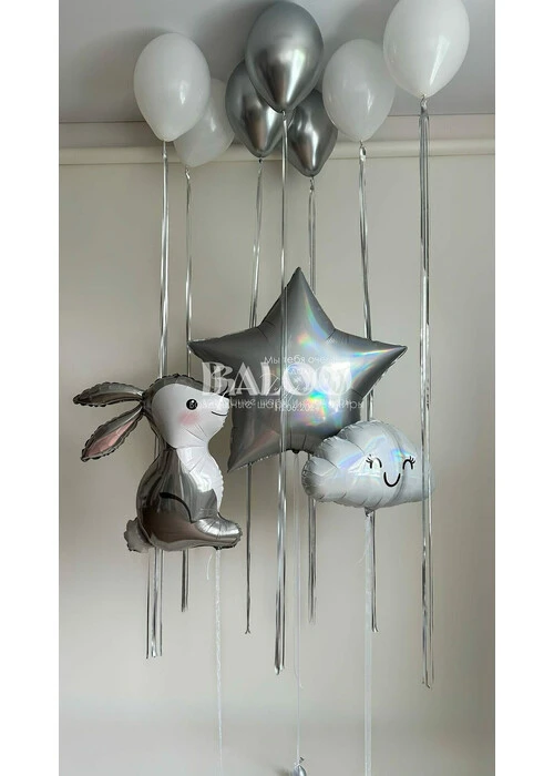 Набор гелиевых шаров на выписку с зайкой и облаком №3162