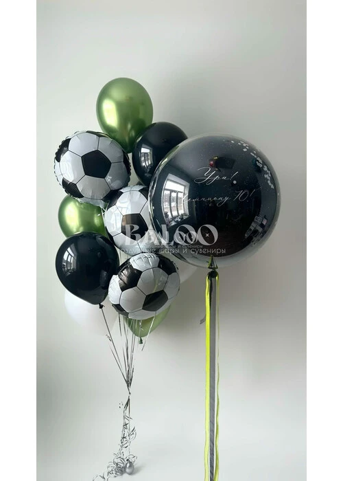 Набор гелиевых шаров на день рождения с футбольными мячами и большим шаром №3004 — отзывы