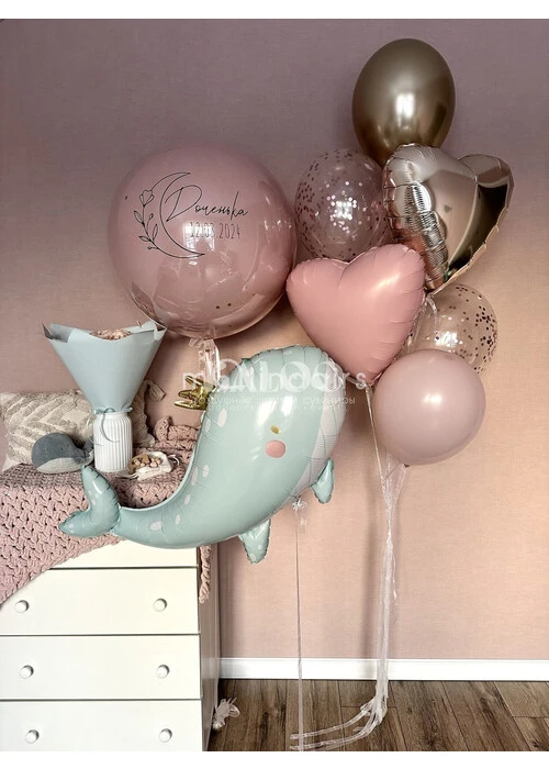 Набор гелиевых шаров на выписку девочки в розовом цвете с китом №3167 — отзывы