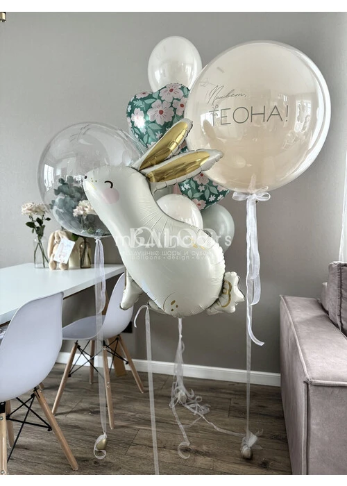 Набор гелиевых шаров на выписку девочки с зайчиком №3179