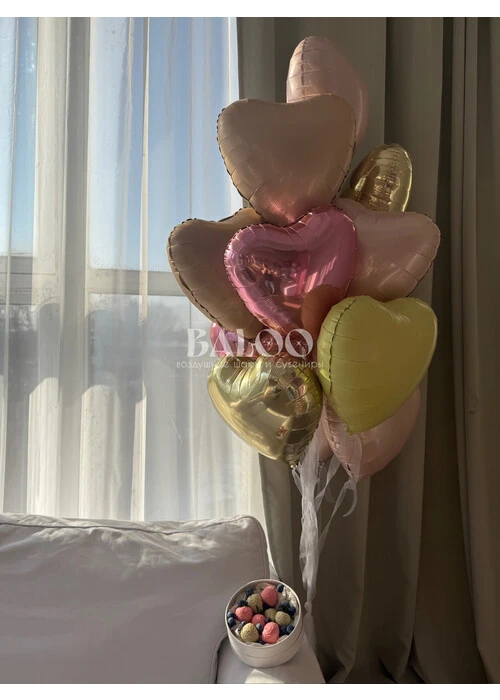 Набор гелиевых воздушных шаров на 8 марта с сердцами №0182