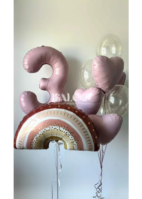 Набор гелиевых шаров с радугой и пудровой цифрой на день рождения №2035 — отзывы