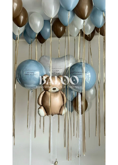 Набор гелиевых шаров на выписку большое сердце с медведем №9878 — отзывы