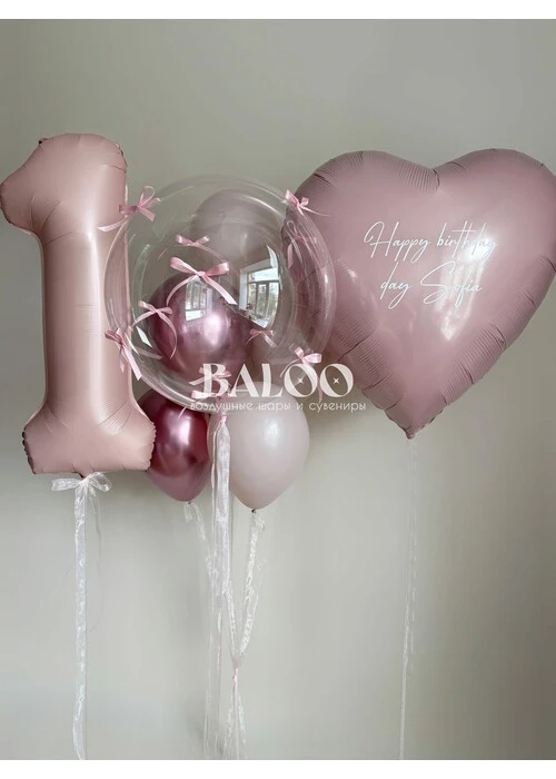 Набор гелиевых шаров для девочки на годик с розовым сердцем №9910 — отзывы