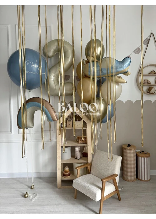 Набор с радугой, мишкой, бежевой цифрой и большим шаром для мальчика №8330 — отзывы