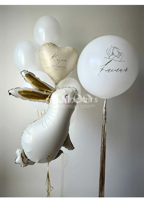 - Связка из 6 латексных гелиевых шаров и фольгированного шара в виде сердца с индивидуальной надписью.*