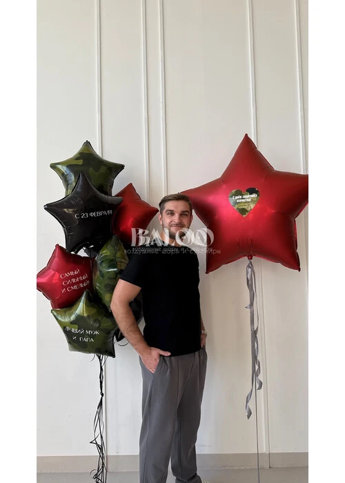Набор гелиевых воздушных шаров на 23 февраля с камуфляжными звездами №0124 — отзывы