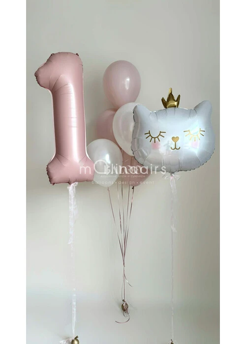Набор гелиевых шаров для девочки с кошкой на день рождения №3289