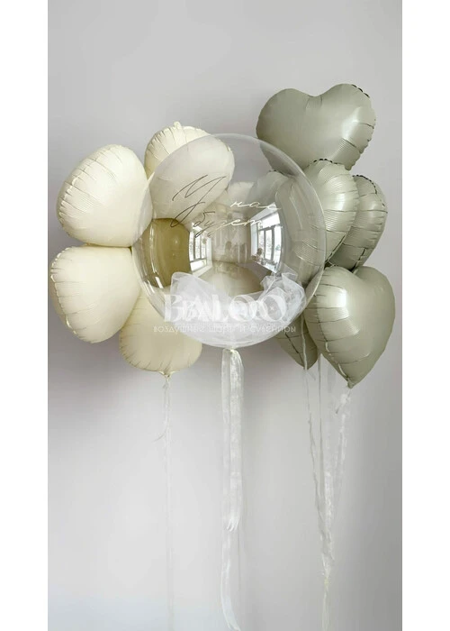 - Латексный гелиевый шар 24 дюйма бабл с фатином и надписью