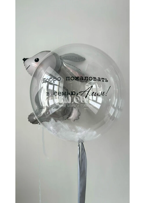 Набор гелиевых шаров с зайкой и прозрачным шаром с надписью на выписку №3215 — отзывы