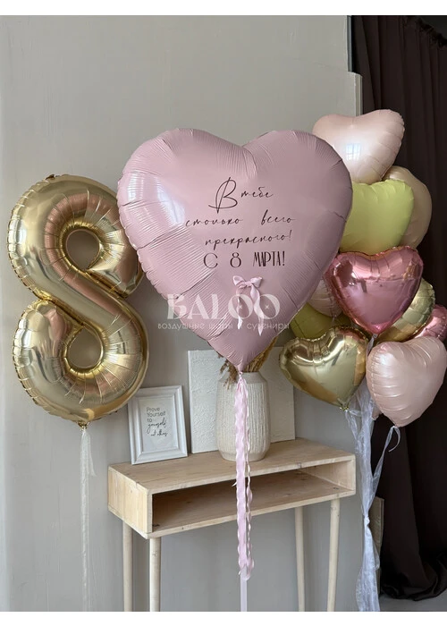Набор гелиевых воздушных шаров на 8 марта с поздравлением на фольгированном сердце №0167 — отзывы
