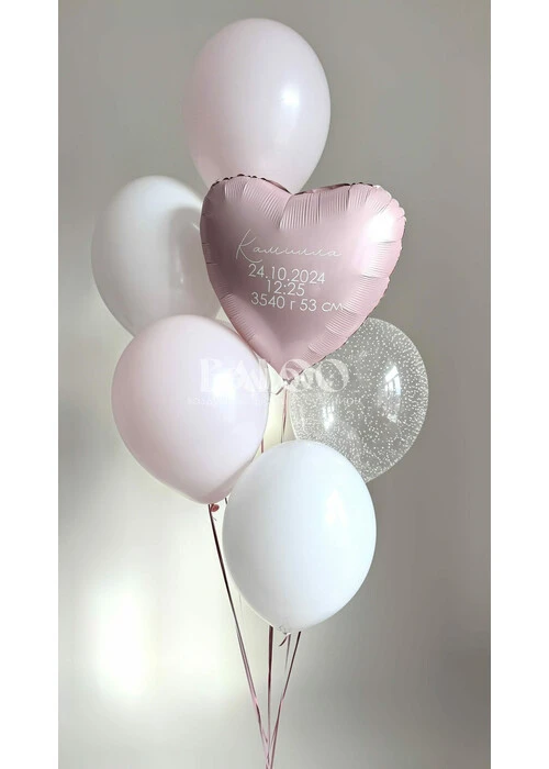 Набор гелиевых воздушных шаров на выписку с сердечком для девочки №9871