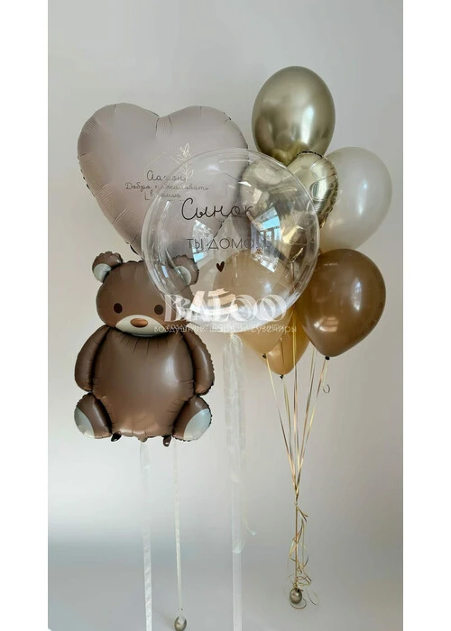 Набор гелиевых воздушных шаров на выписку с мишкой и бежевым сердцем №9853 — отзывы