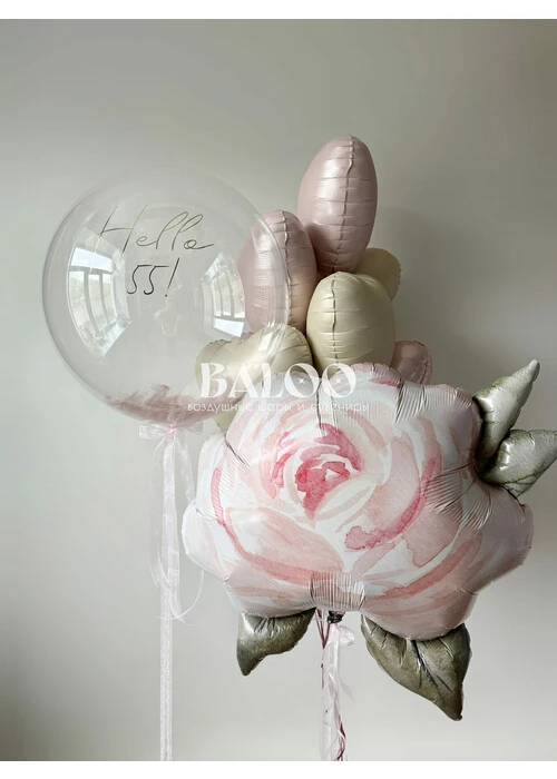 Набор гелиевых шаров с цветком, сердцами и прозрачным шаром № 3400 — отзывы