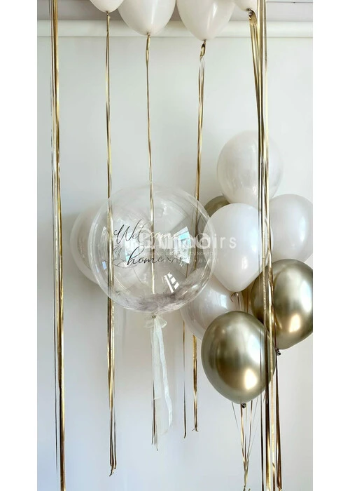 - Воздушный латексный гелиевый шар-баблс 24 дюйма с надписью и наполнением перья*