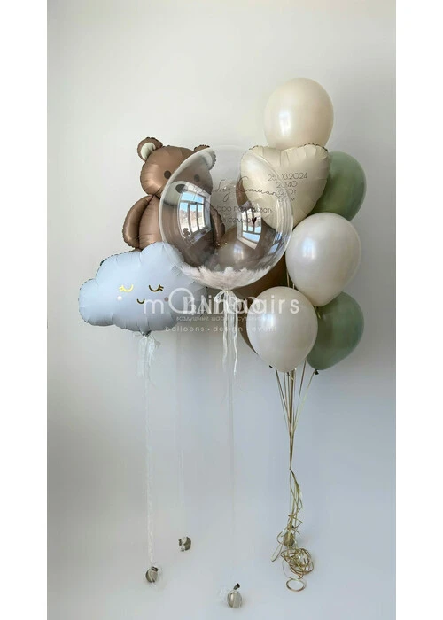 Набор гелиевых шаров на выписку с мишкой и облаком №3208