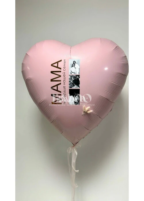 - Фольгированный гелиевый шар в виде пастельного сердца с индивидуальной фотопечатью и надписью.