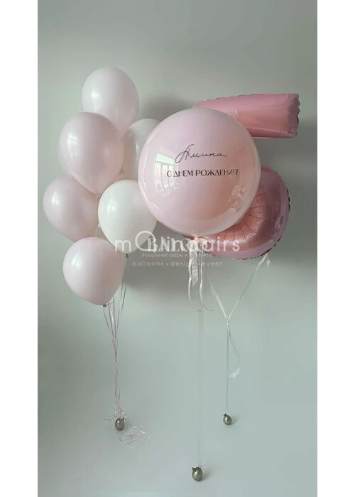 Набор гелиевых шаров с розовой цифрой и большим шаром для девочки №2036