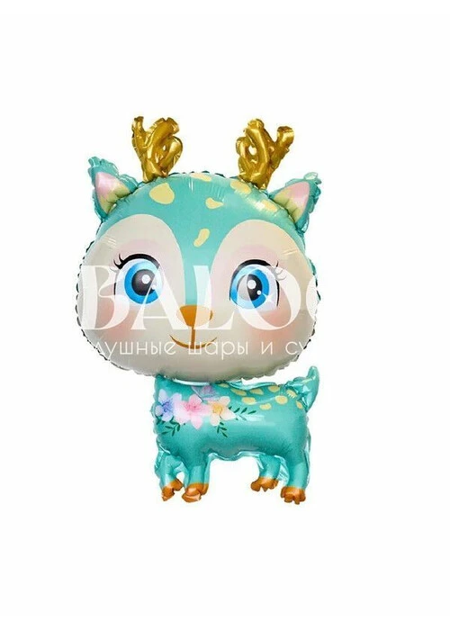 Фольгированная фигура "Олень милый бирюзовый"