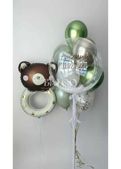 Набор гелиевых шаров на выписку мальчика с мишкой-погремушкой №3212