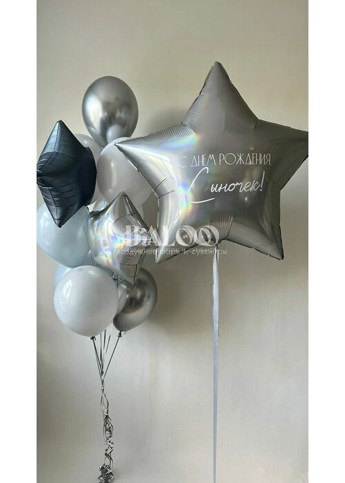 Набор шаров с большой серебряной звездой с надписью на день рождения №3104 — отзывы
