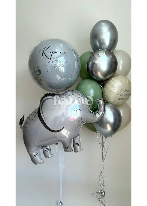 Набор гелиевых воздушных шаров на выписку для малыша со слоненком №9887