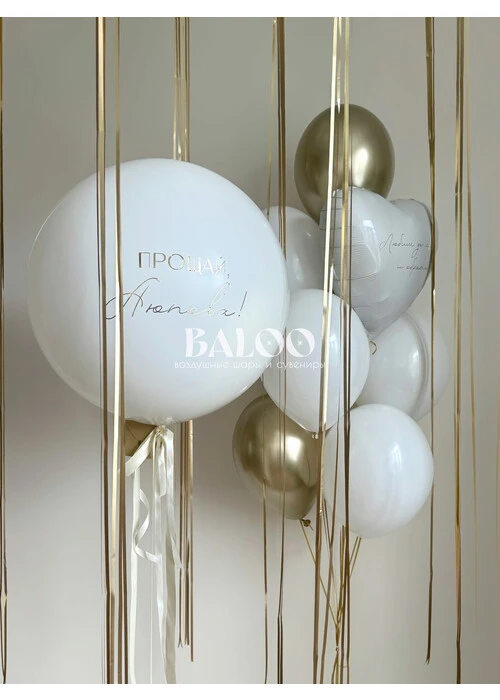 - Белый латексный шар 24 дюйма с индивидуальной надписью, внутри шара - сердце 18 дюймов с индивидуальной надписью.*