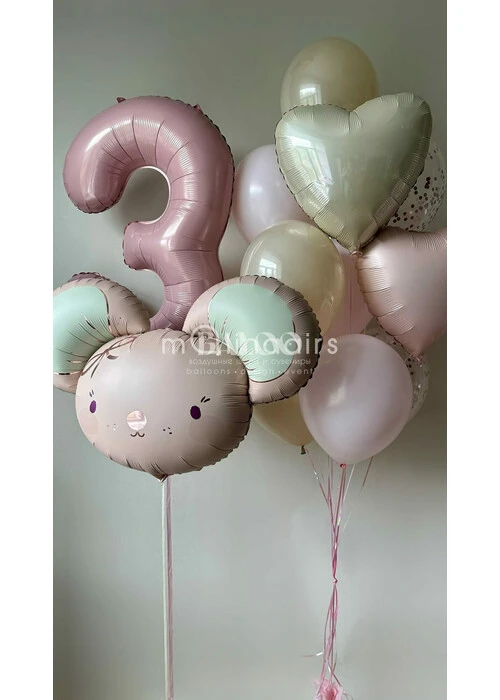 Набор гелиевых шаров с мышкой и розовой цифрой на день рождения №2057