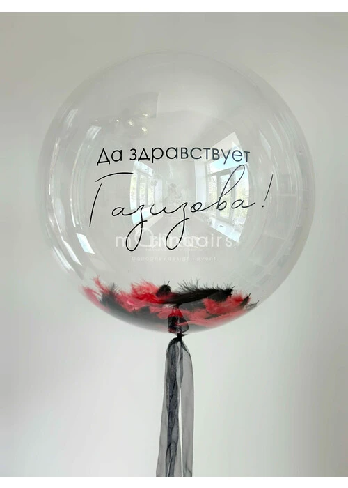 - Латексный гелиевый шар 24 дюйма баблс с надписью и перьями