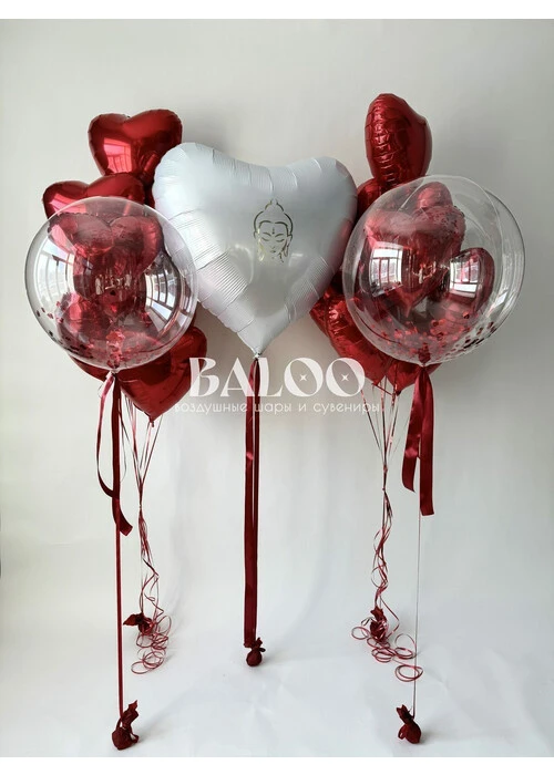 Набор гелиевых шаров с красными сердцами на 14 февраля для бизнеса №3401
