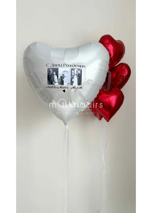 Состав набора Фольгированное сердце 36 дюймов с надписью и фото Связка из 5 сердец 18 дюймов