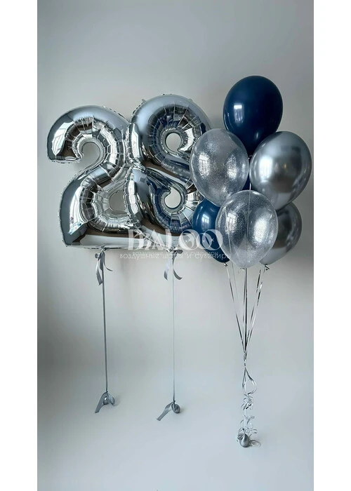Набор гелиевых шаров с серебряными цифрами и связкой на день рождение №3380