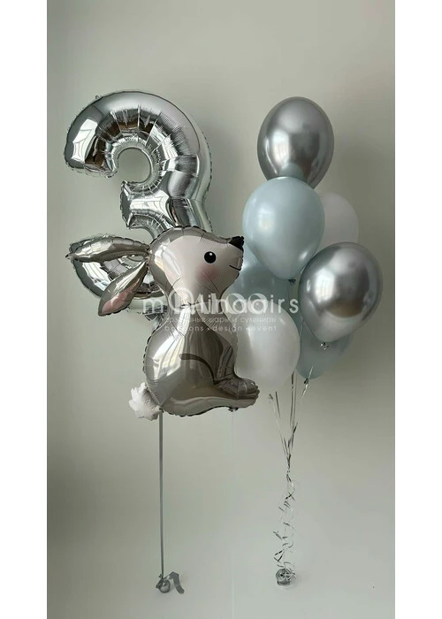 Набор гелиевых шаров с зайчиком и серебряной цифрой для мальчика №3005