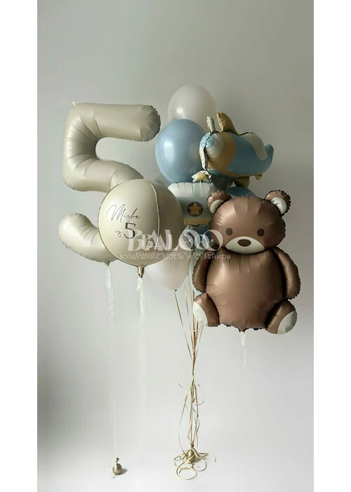 Набор гелиевых шаров с цифрой, мишкой, самолетом и машинкой для мальчика №3011