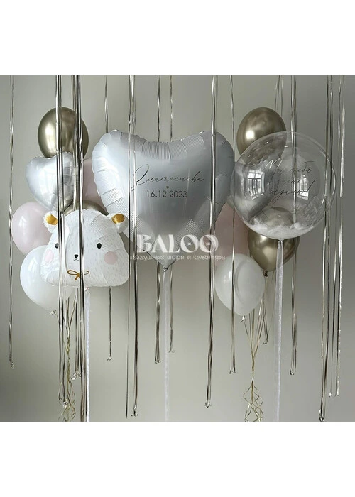 - Две связки из латексных гелиевых шаров с добавлением фольгированного гелиевого шара*
