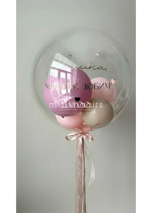 - Воздушный латексный гелиевый шар баблс 24 дюйма с индивидуальной надписью и наполнением в виде маленьких шариков