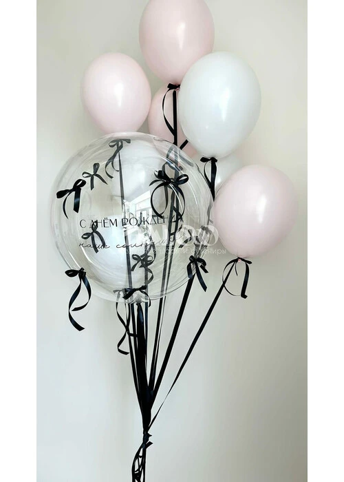 Связка из 9 латексныз шаров и баблс сбантиками и надписью