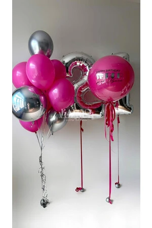 Набор шаров в малиновом и серебряном цвете на день рождения девушки №3408