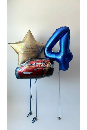 Набор гелиевых шаров для мальчика с машинкой, большой звездой и цифрой №3000