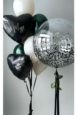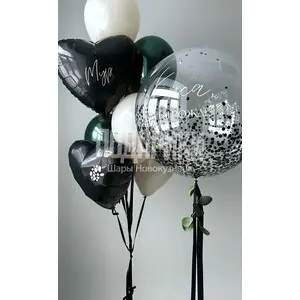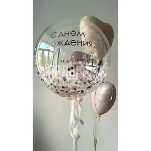 Набор гелиевых шаров с прозрачным шаром и сердцами на день рождения №2047
