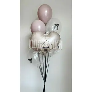 Набор гелиевых шаров с бантиками и сердцем в пудровом цвете №2022